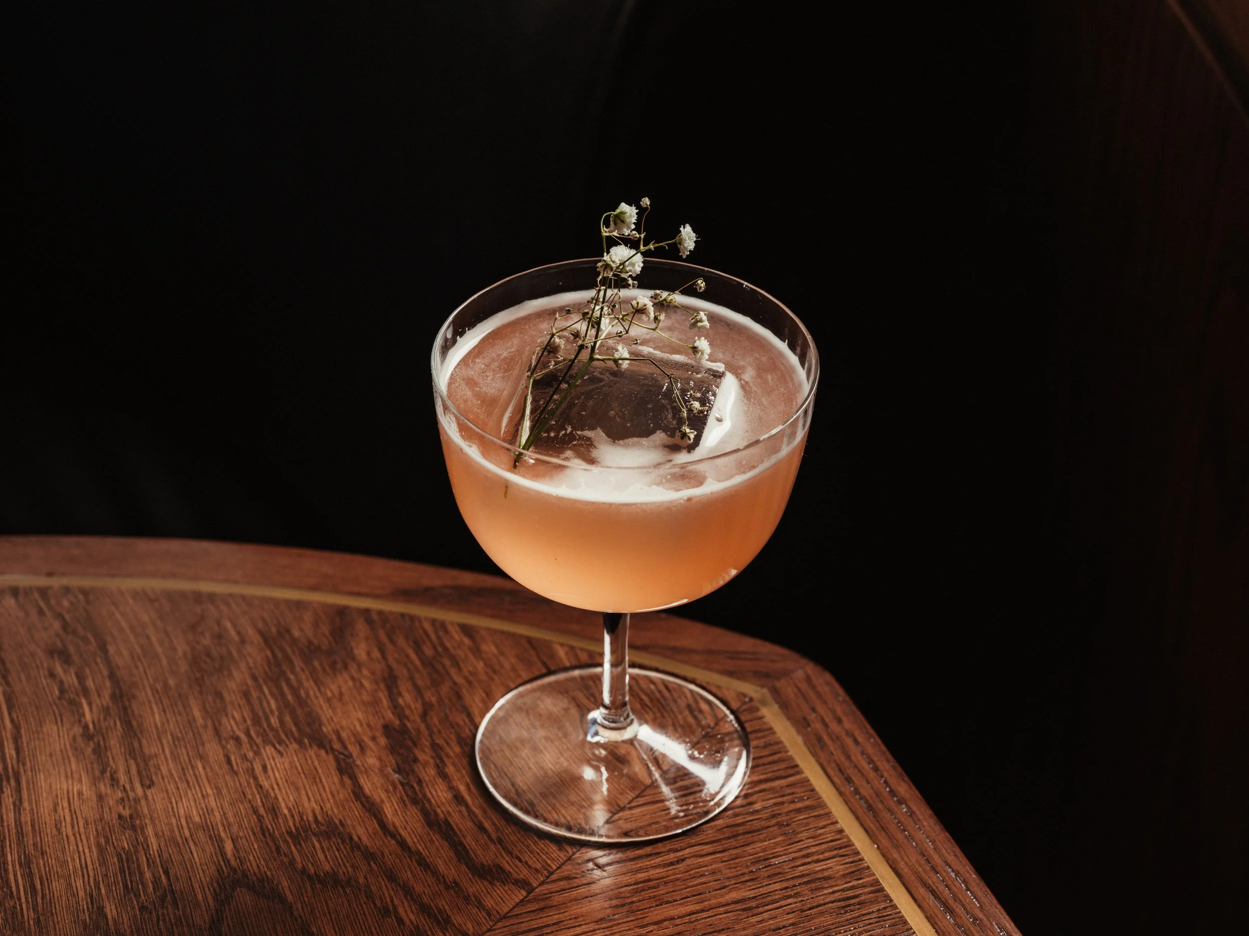 avallen apple calvados, osmanthus tea, midori melon liqueur, lemon myrtle, lemon, aquafab